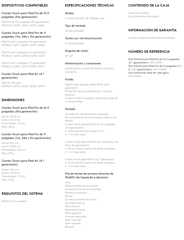 Funda con Teclado Trackpad Logitech Combo Touch para iPad Pro 12.9, Panel Táctil, Backlit