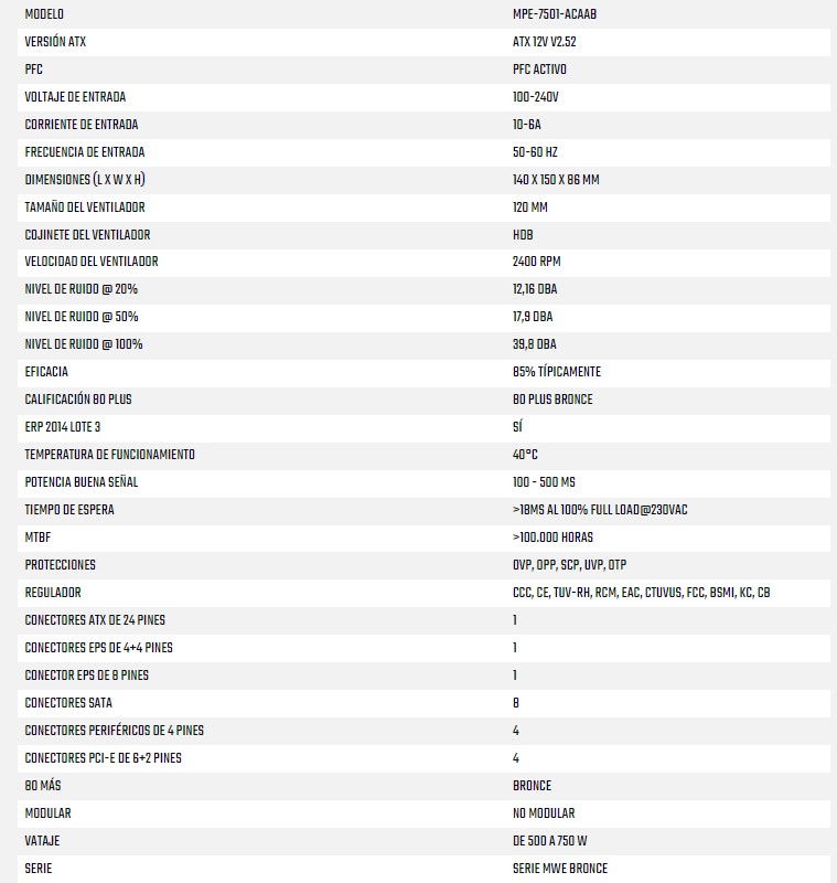 Fuente de Poder 750W Cooler Master MWE 750 Bronze V2, Certificada 80+ Plus Bronze