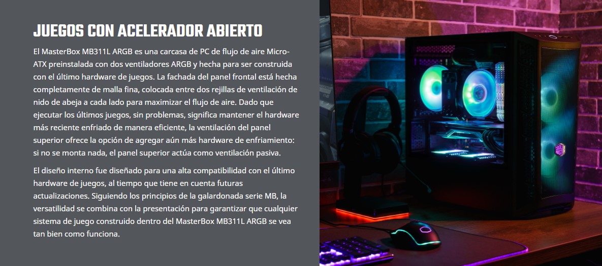 Gabinete Gamer Cooler Master Masterbox MB311L ARGB, Vidrio Templado, Mini-ITX, Micro-AT