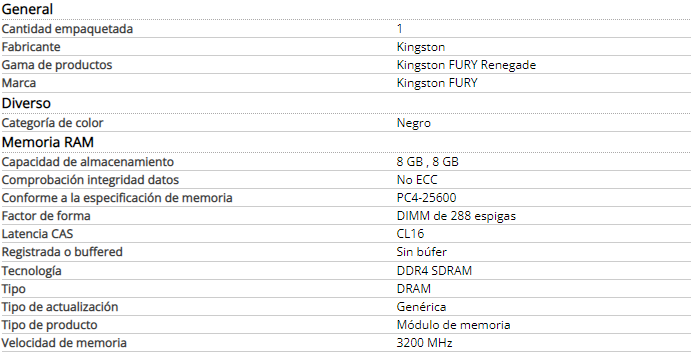 Memoria Ram Kingston 8GB 3200MHz DDR4 DIMM FURY Renegade Black