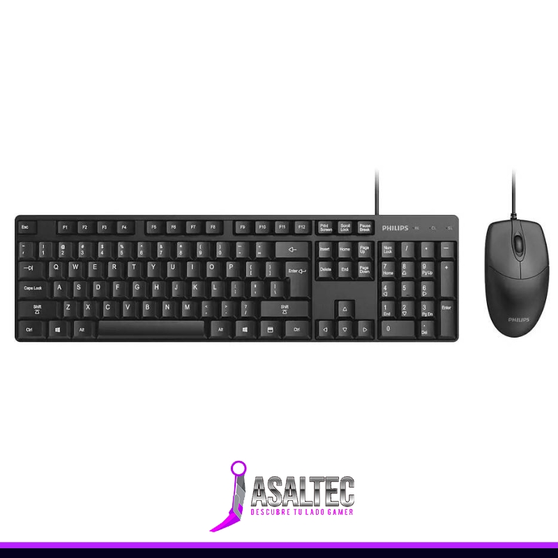 Kit Mouse + Teclado Philips SPT6254, Mouse 3 Botones, Teclado Silencioso, Plug & Play, Negro