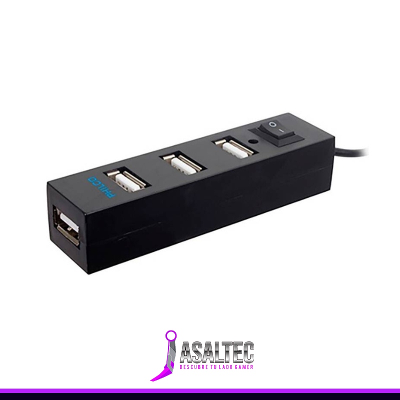 Mini Hub USB 2.0 Philco, 4 Puertos, Negro