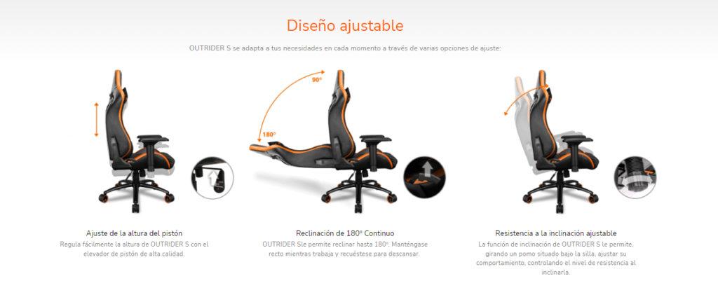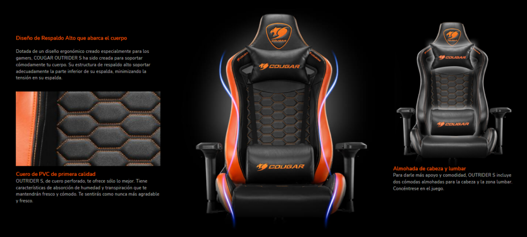 Silla Gamer Cougar Outrider S, Reclinable 180º, Black/Orange